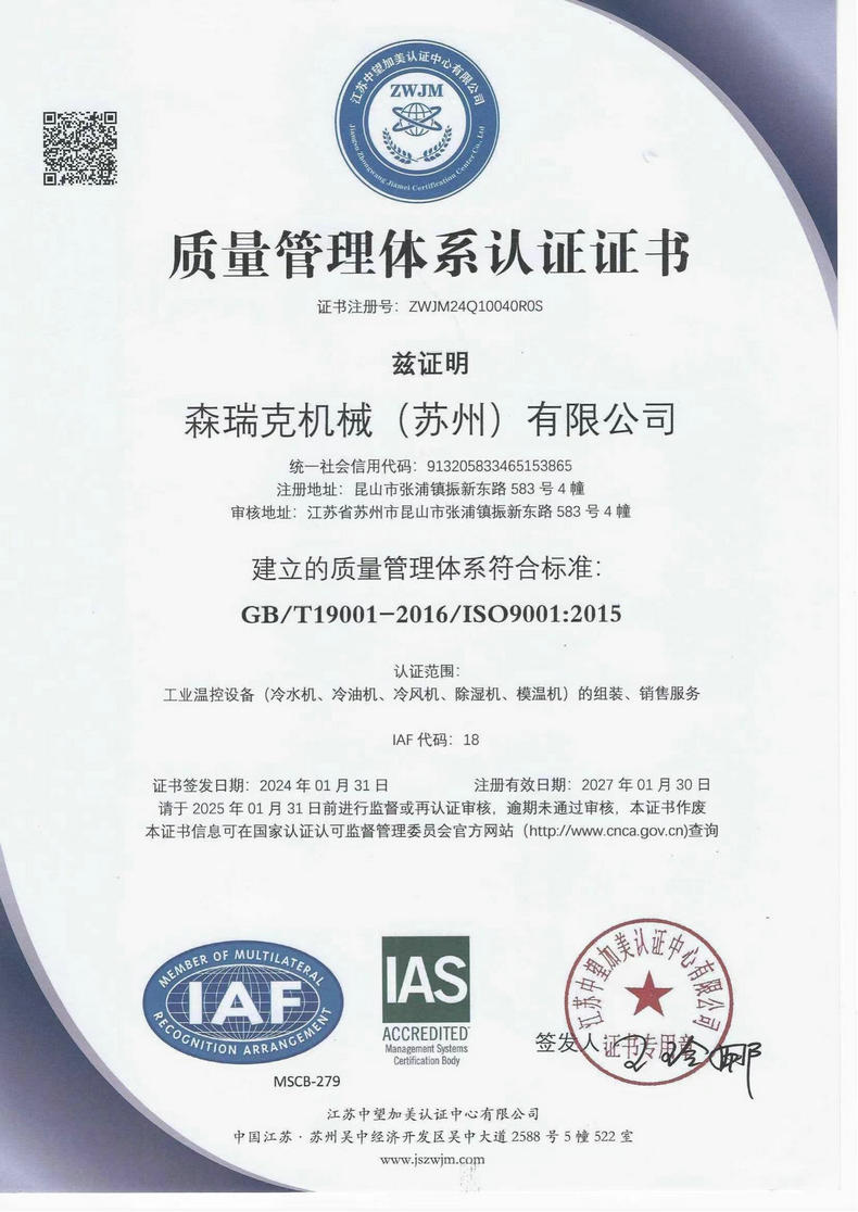 森瑞克機(jī)械(蘇州)有限公司(簡(jiǎn)稱:SENRICK)是一家中外合作性企業(yè),引進(jìn)技術(shù),專注于工業(yè)制冷設(shè)備,工業(yè)溫控設(shè)備,非標(biāo)制冷設(shè)備,集激光,化工,真空設(shè)備輔機(jī)等集研發(fā)、生產(chǎn)、銷售、服務(wù)于一體的的現(xiàn)代化科技企業(yè)。公司擁有完善的制造設(shè)備,先進(jìn)的檢測(cè)系統(tǒng),獨(dú)立的加工、生產(chǎn)工藝,一支開(kāi)拓創(chuàng)新專業(yè)有素的技術(shù)人才團(tuán)隊(duì),以及全面的質(zhì)量控制體系,為產(chǎn)品質(zhì)量的不斷優(yōu)化提供了強(qiáng)大的保障,以確保滿足不同市場(chǎng)的各種需求。經(jīng)過(guò)多年的努力企業(yè)相繼研發(fā)生產(chǎn)出了工業(yè)冷水機(jī),工業(yè)冷風(fēng)機(jī),工業(yè)冷油機(jī),工業(yè)機(jī),低溫冷水機(jī),低溫冷風(fēng)機(jī),低溫冷油機(jī),螺桿式冷水機(jī)...